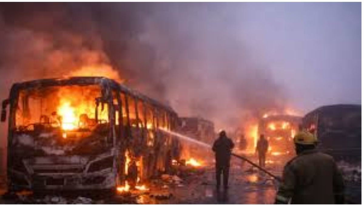 मथुरा,16 दिसंबर 2025 ! मंगलवार तड़के मथुरा में दिल्ली–आगरा एक्सप्रेसवे पर कई बसों में आग लग गई। बताया जाता है कि मंगलवार तड़के एक भीषण सड़क हादसा हुआ, जिसमें घने कोहरे के कारण कम दृश्यता के बीच कई बसें और कारें आपस में टकरा गयीं और उनमें से कई में आग लग गयी। पुलिस, दमकल और चिकित्सा टीमें मौके पर पहुँच चुकी हैं। राहत एवं बचाव कार्य जारी है।